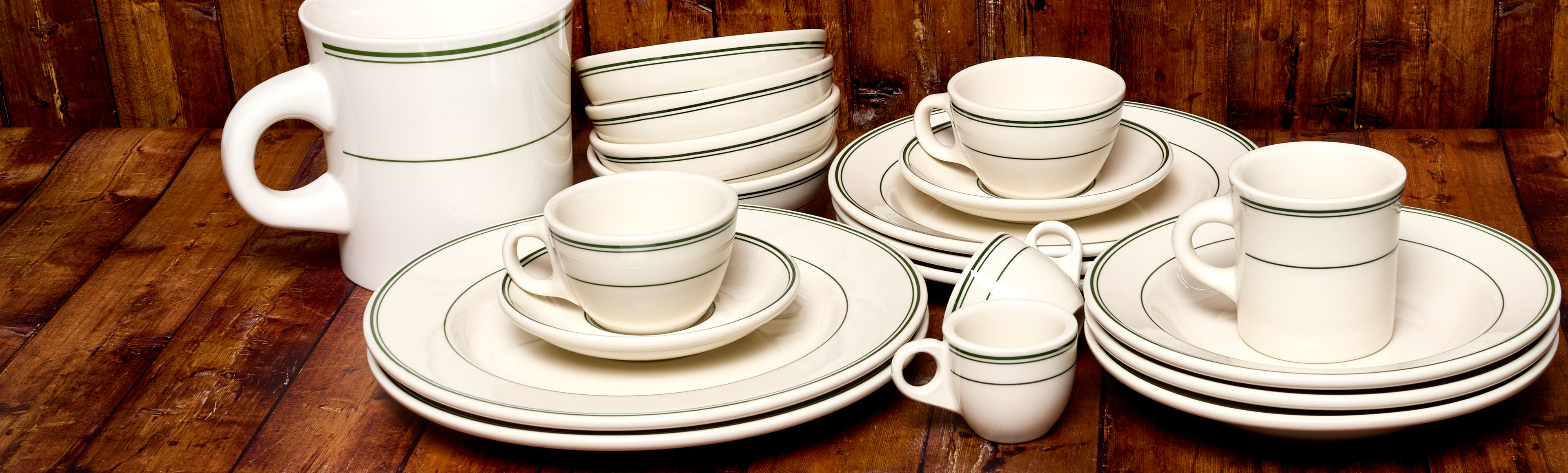 Inspired by the golden age of American diners, the Greenband design traces back to one of the very first patterns in American restaurant ware history.