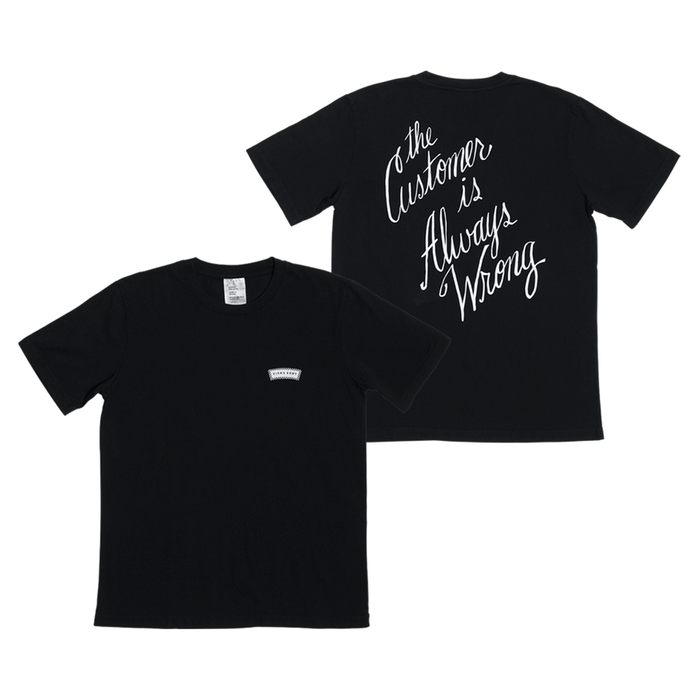 Soft cotton. Logo in the front. Brutal honesty in the back. The customer is always wrong—we’re comfortable admitting it.. at least on a tee.